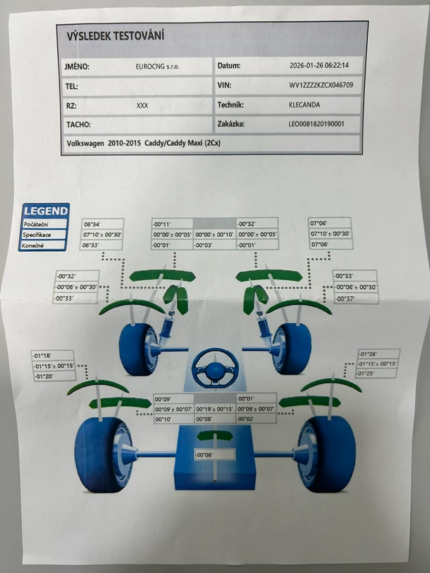 - Kapacita nádrží 36kg CNG + 10l benzín, dojezd až 800km celkem, reálná spotřeba cca 5-6 kg/100km.