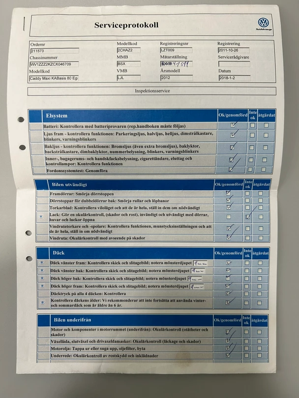 - Koupeno ve Švédsku, první majitel, servisní historie.